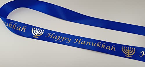 Happy Hanukkah Royal blue ribbon with gold print 25mm x 1m