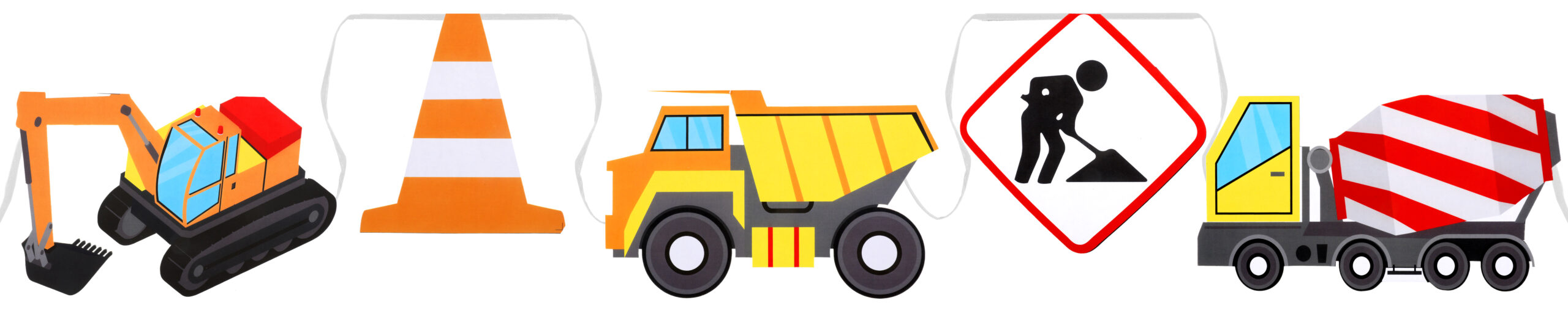 Lorry and Digger shaped multicolour bunting 10 flags 500cm long